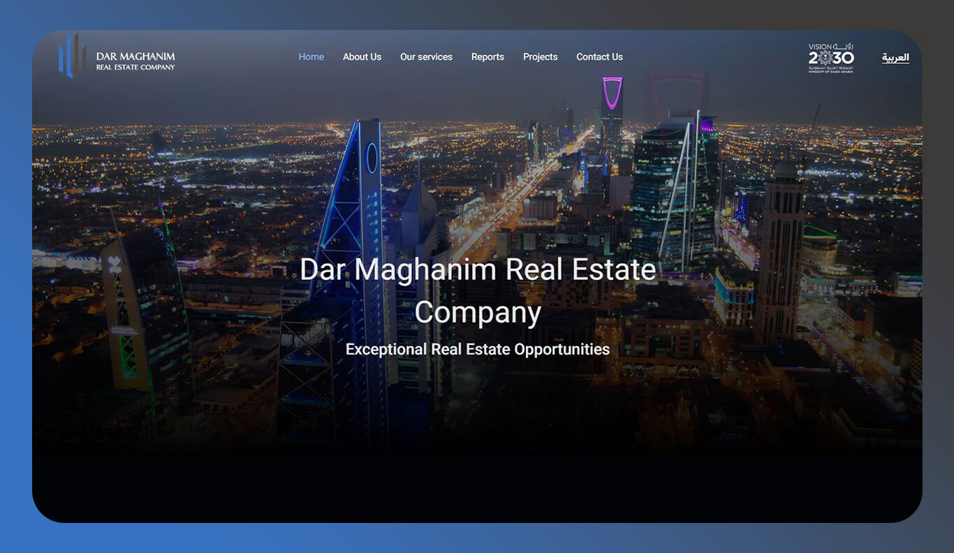 تصميم موقع دار مغانم العقارية | موقع شركة عقارية