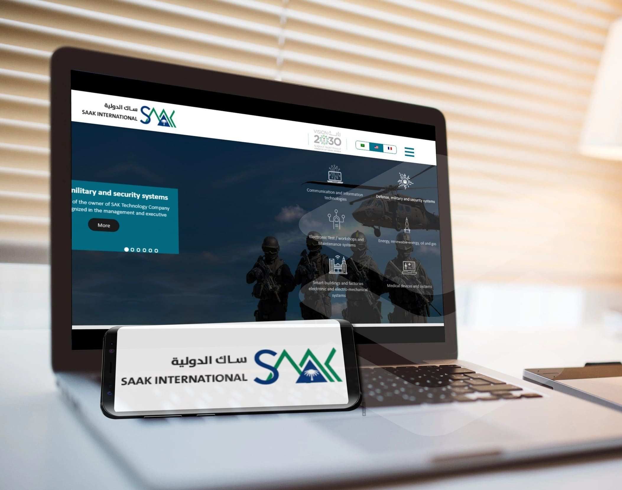 مواقع الأنظمة الدفاعية والأمنية – تصميم موقع شركة ساك الدولية SAAK